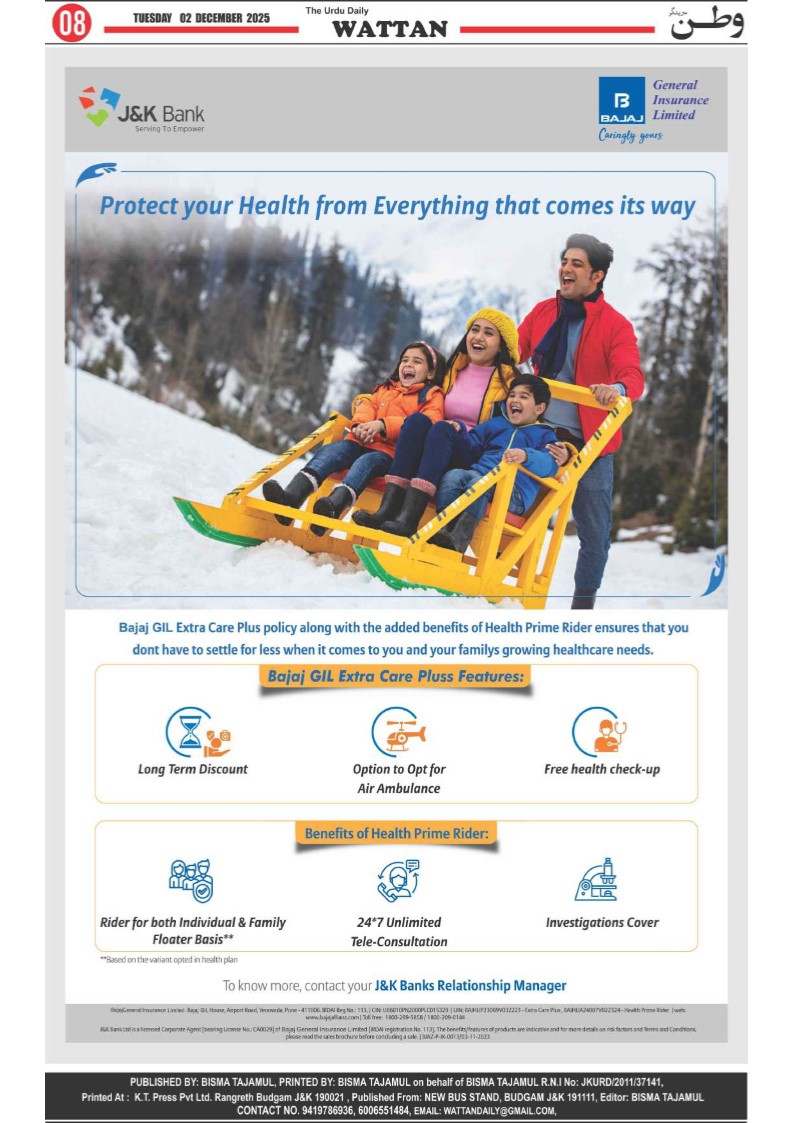 WATTAN DAILY 02 DEC Page: 8 December 02, 2025 8 Page 1Page 2Page 3Page 4Page 5Page 6Page 7Page 8 × WATTAN DAILY 02 DEC Wattan 02 Dec_1Wattan 02 Dec_2Wattan 02 Dec_3Wattan 02 Dec_4Wattan 02 Dec_5Wattan 02 Dec_6Wattan 02 Dec_7Wattan 02 Dec_8 Download PDF File << First << 8 >> Last >> Page no 1Page no 2Page no 3Page no 4Page no 5Page no 6Page no 7Page no 8