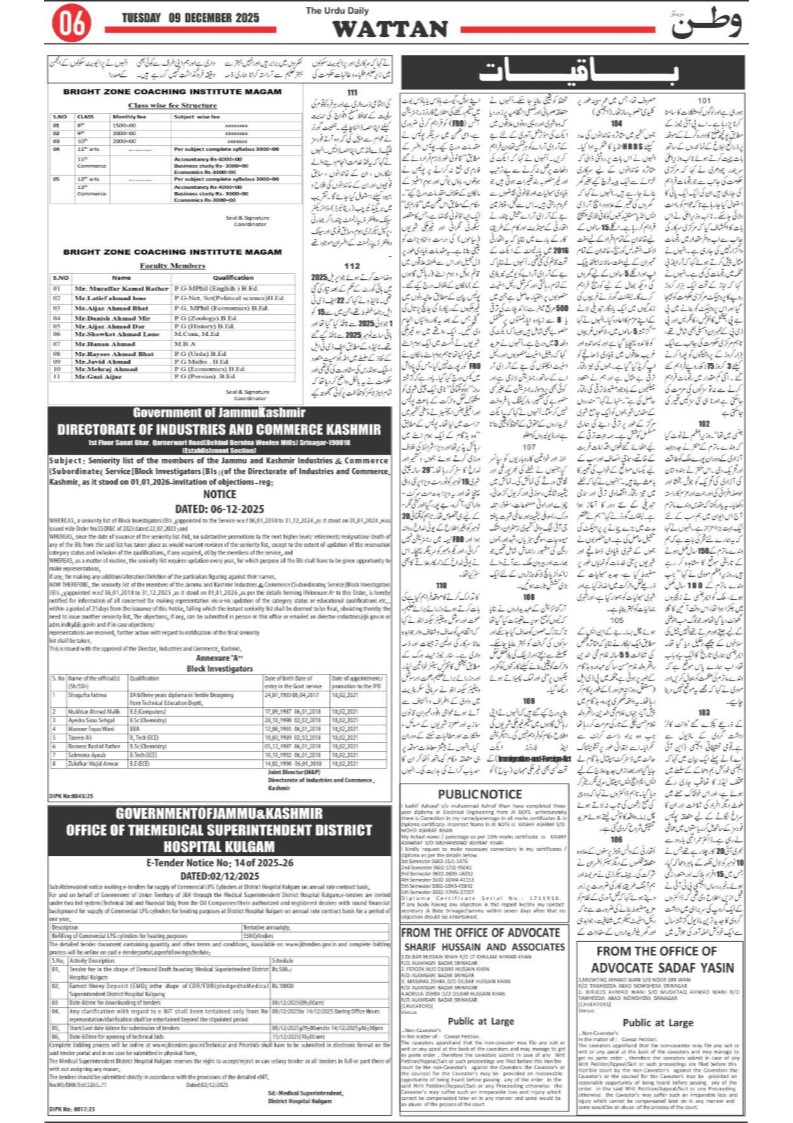WATTAN DAILY 09 Dec Page: 6 December 09, 2025 6 Page 1Page 2Page 3Page 4Page 5Page 6Page 7Page 8 × WATTAN DAILY 09 Dec Wattan 09 Dec_1Wattan 09 Dec_2Wattan 09 Dec_3Wattan 09 Dec_4Wattan 09 Dec_5Wattan 09 Dec_6Wattan 09 Dec_7Wattan 09 Dec_8 Download PDF File << First << 6 >> Last >> Page no 1Page no 2Page no 3Page no 4Page no 5Page no 6Page no 7Page no 8