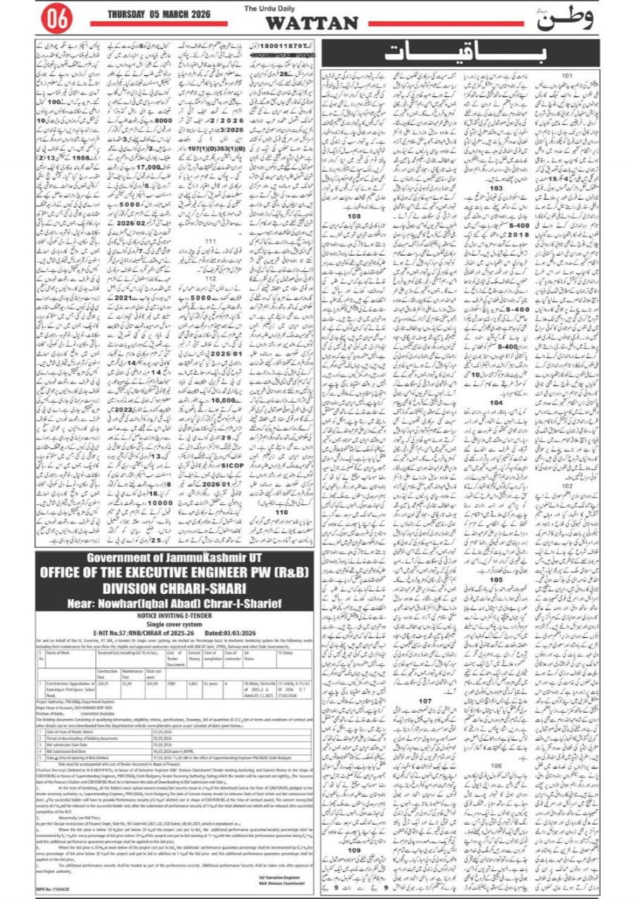 Wattan Daily 05 march Page: 6 March 05, 2026 6 Page 1Page 2Page 3Page 4Page 5Page 6Page 7Page 8 × Wattan Daily 05 march Wattan 5 Feb_1Wattan 5 Feb_2Wattan 5 Feb_3Wattan 5 Feb_4Wattan 5 Feb_5Wattan 5 Feb_6Wattan 5 Feb_7Wattan 5 Feb_8 Download PDF File << First << 6 >> Last >> Page no 1Page no 2Page no 3Page no 4Page no 5Page no 6Page no 7Page no 8