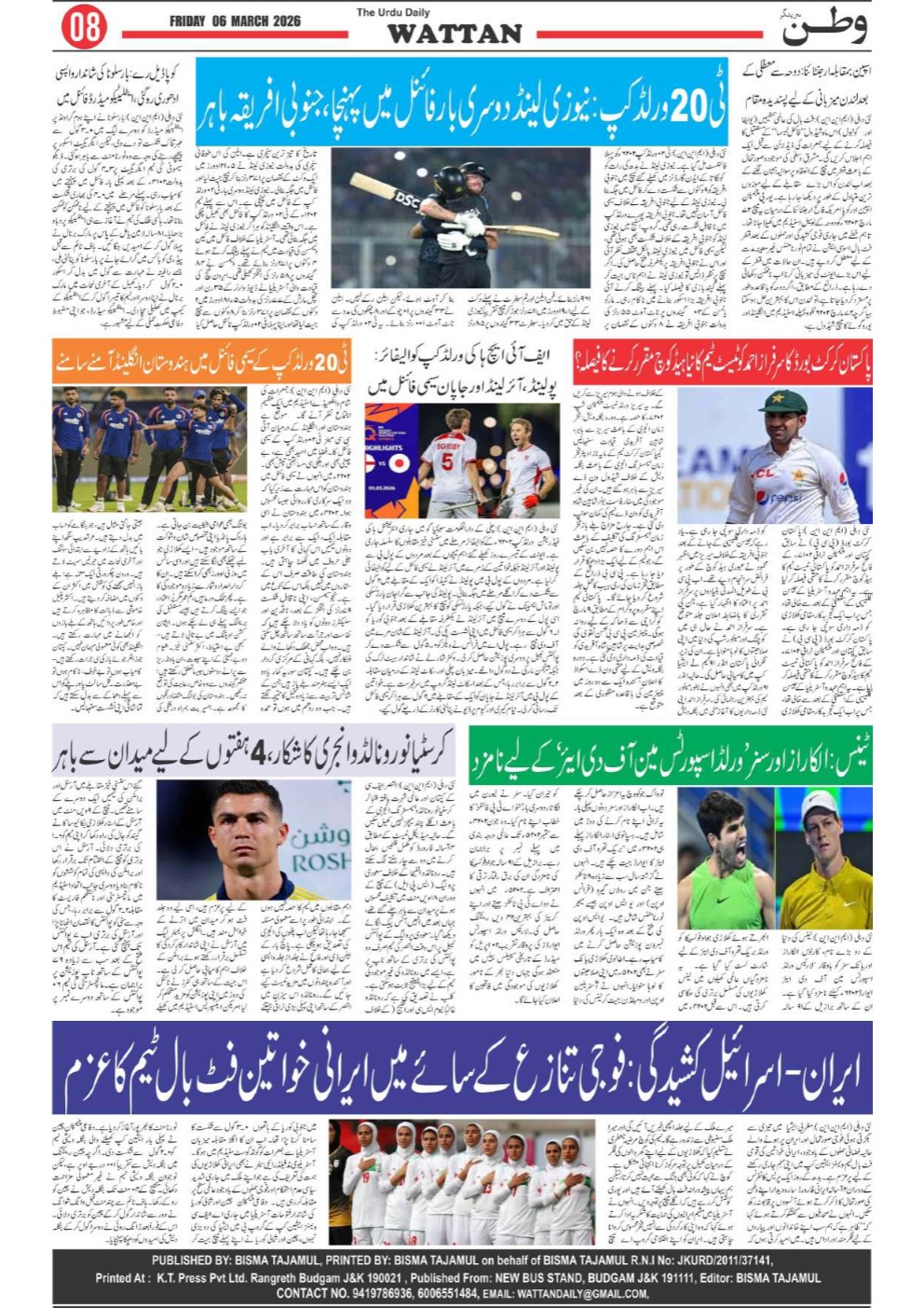 Wattan Daily 06 march Page: 8 March 06, 2026 8 Page 1Page 2Page 3Page 4Page 5Page 6Page 7Page 8 × Wattan Daily 06 march Wattan 06 March_1Wattan 06 March_2Wattan 06 March_3Wattan 06 March_4Wattan 06 March_5Wattan 06 March_6Wattan 06 March_7Wattan 06 March_8 Download PDF File << First << 8 >> Last >> Page no 1Page no 2Page no 3Page no 4Page no 5Page no 6Page no 7Page no 8
