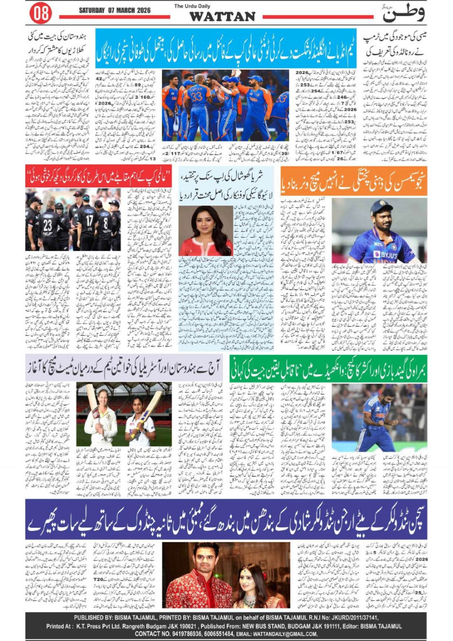 Wattan Daily 07 march Page: 8 March 07, 2026 8 Page 1Page 2Page 3Page 4Page 5Page 6Page 7Page 8 × Wattan Daily 07 march Wattan 07 March_1Wattan 07 March_2Wattan 07 March_3Wattan 07 March_4Wattan 07 March_5Wattan 07 March_6Wattan 07 March_7Wattan 07 March_8 Download PDF File << First << 8 >> Last >> Page no 1Page no 2Page no 3Page no 4Page no 5Page no 6Page no 7Page no 8