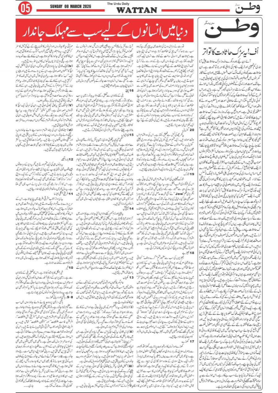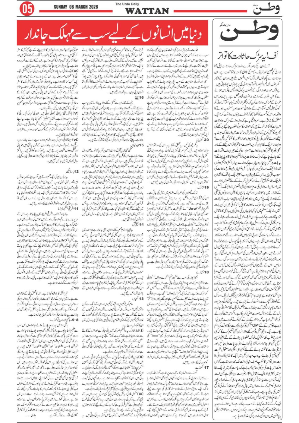 Wattan Daily 08 march Page: 5 March 08, 2026 5 Page 1Page 2Page 3Page 4Page 5Page 6Page 7Page 8 × Wattan Daily 08 march Wattan 08 March_1Wattan 08 March_2Wattan 08 March_3Wattan 08 March_4Wattan 08 March_5Wattan 08 March_6Wattan 08 March_7Wattan 08 March_8 Download PDF File << First << 5 >> Last >> Page no 1Page no 2Page no 3Page no 4Page no 5Page no 6Page no 7Page no 8
