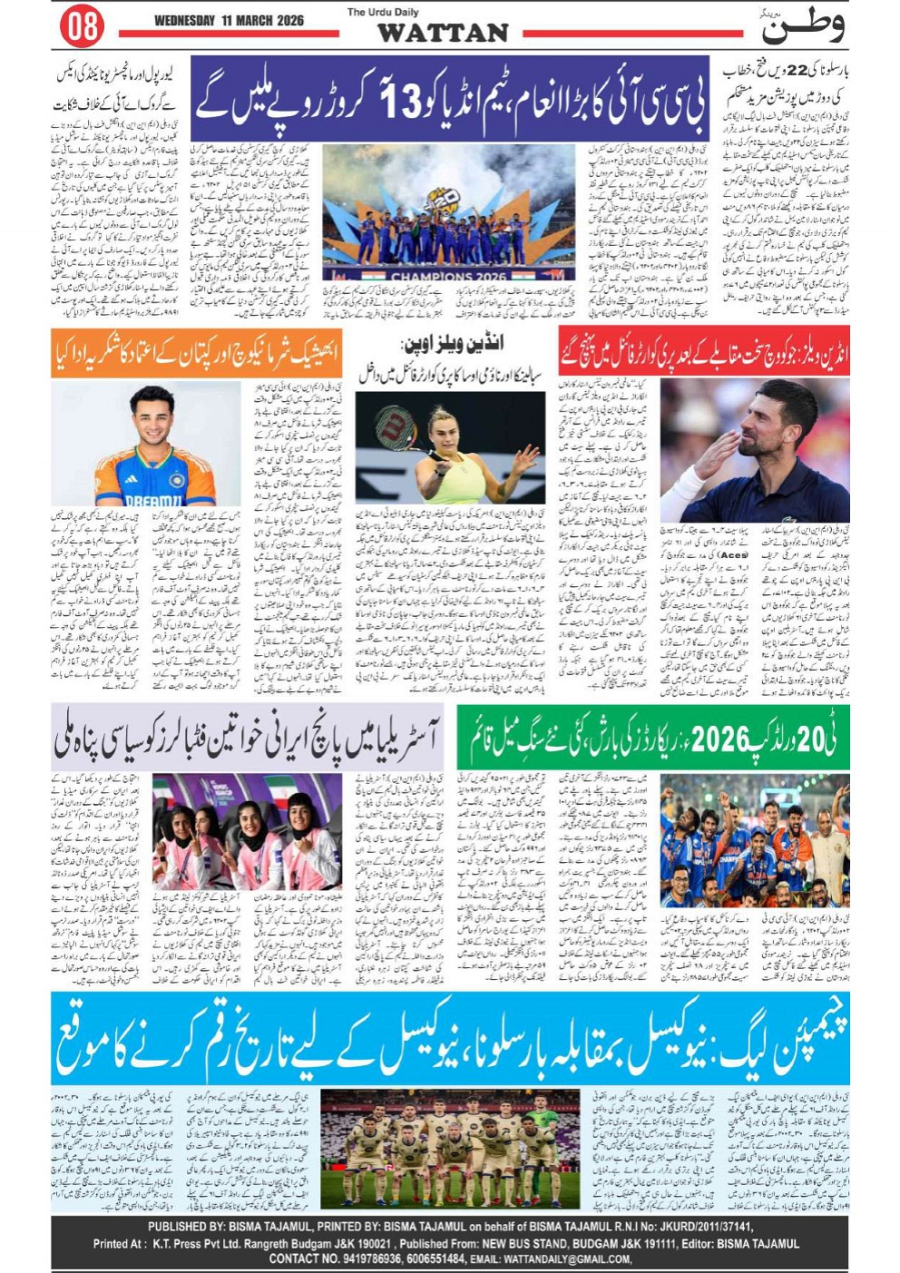 Wattan Daily 11 march Page: 8 March 11, 2026 8 Page 1Page 2Page 3Page 4Page 5Page 6Page 7Page 8 × Wattan Daily 11 march Wattan 11 March_1Wattan 11 March_2Wattan 11 March_3Wattan 11 March_4Wattan 11 March_5Wattan 11 March_6Wattan 11 March_7Wattan 11 March_8 Download PDF File << First << 8 >> Last >> Page no 1Page no 2Page no 3Page no 4Page no 5Page no 6Page no 7Page no 8