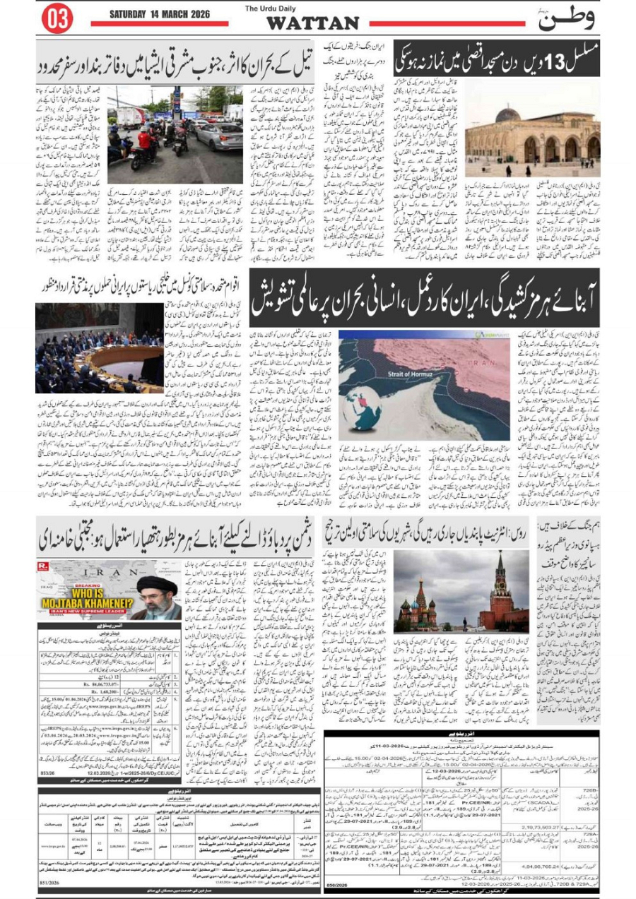 Wattan Daily 14 march Page: 3 March 14, 2026 3 Page 1Page 2Page 3Page 4Page 5Page 6Page 7Page 8 × Wattan Daily 14 march Wattan 14 March_1Wattan 14 March_2Wattan 14 March_3Wattan 14 March_4Wattan 14 March_5Wattan 14 March_6Wattan 14 March_7Wattan 14 March_8 Download PDF File << First << 3 >> Last >> Page no 1Page no 2Page no 3Page no 4Page no 5Page no 6Page no 7Page no 8