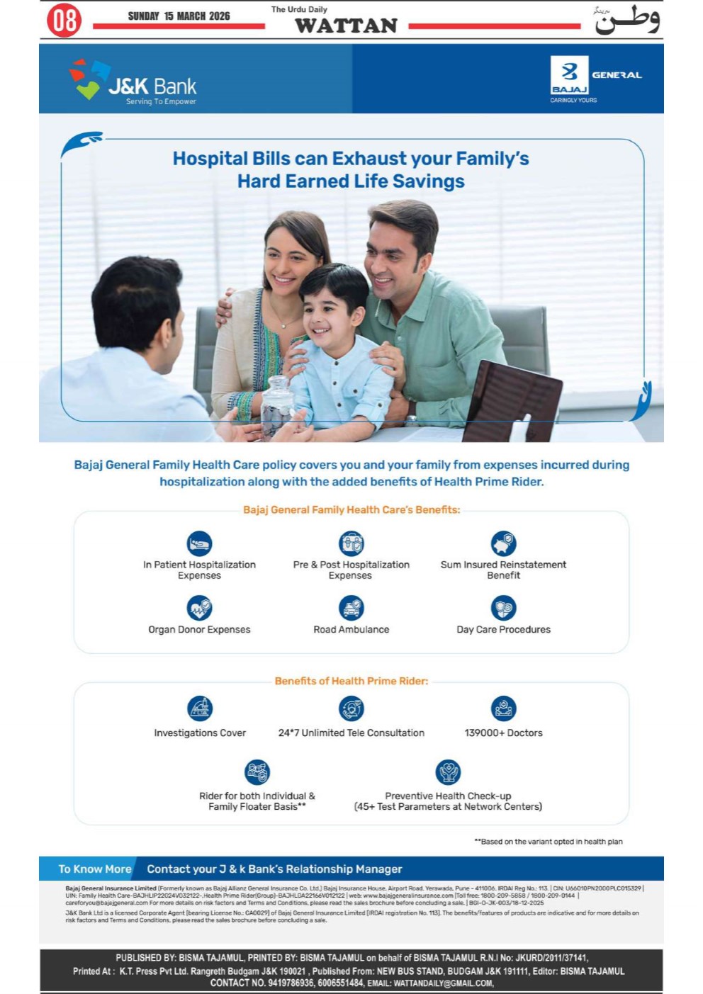 Wattan Daily 15 march Page: 8 March 15, 2026 8 Page 1Page 2Page 3Page 4Page 5Page 6Page 7Page 8 × Wattan Daily 15 march Wattan 15 March_1Wattan 15 March_2Wattan 15 March_3Wattan 15 March_4Wattan 15 March_5Wattan 15 March_6Wattan 15 March_7Wattan 15 March_8 Download PDF File << First << 8 >> Last >> Page no 1Page no 2Page no 3Page no 4Page no 5Page no 6Page no 7Page no 8