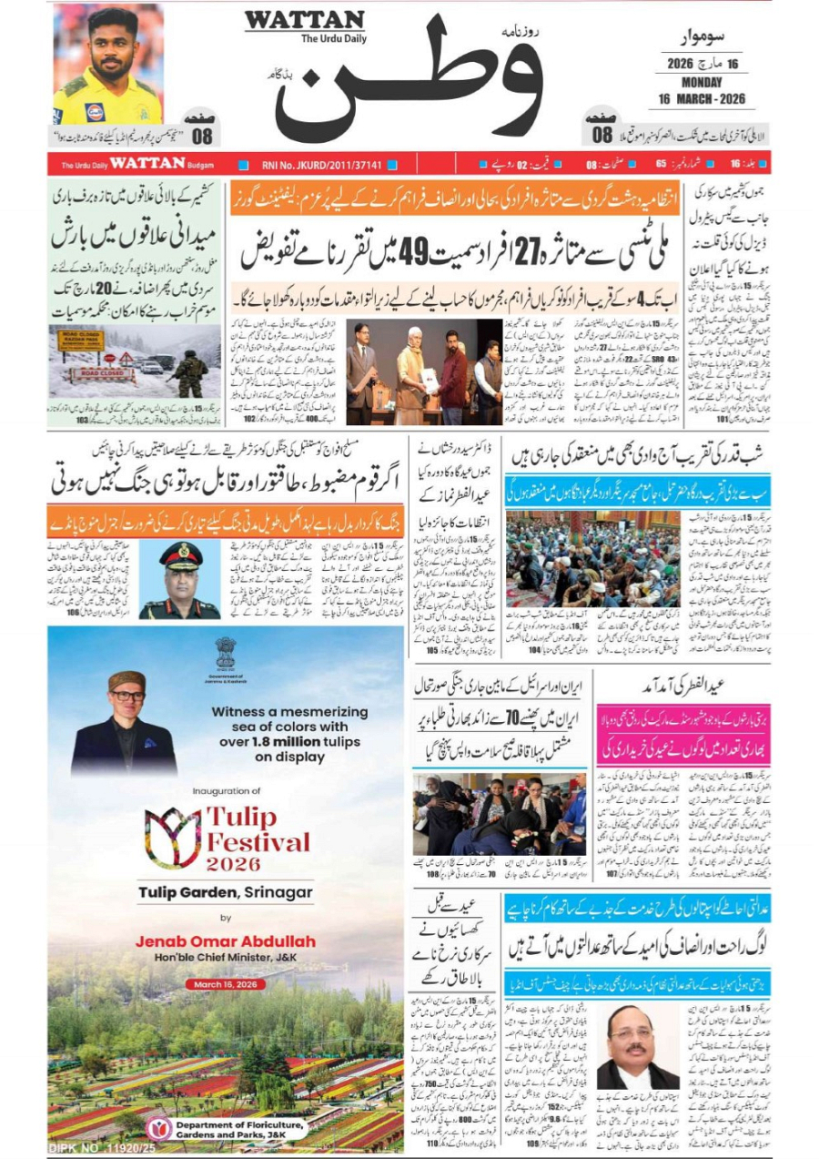 Wattan Daily 16 march March 16, 2026 1 Page 1Page 2Page 3Page 4Page 5Page 6Page 7Page 8 × Wattan Daily 16 march Wattan 16 March_1Wattan 16 March_2Wattan 16 March_3Wattan 16 March_4Wattan 16 March_5Wattan 16 March_6Wattan 16 March_7Wattan 16 March_8 Download PDF File << First << 1 >> Last >> Page no 1Page no 2Page no 3Page no 4Page no 5Page no 6Page no 7Page no 8