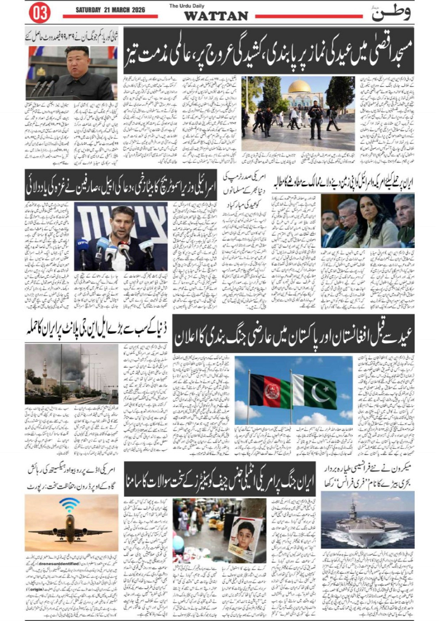 Wattan Daily 21 march Page: 3 March 21, 2026 3 Page 1Page 2Page 3Page 4Page 5Page 6Page 7Page 8 × Wattan Daily 21 march Wattan 21 March_1Wattan 21 March_2Wattan 21 March_3Wattan 21 March_4Wattan 21 March_5Wattan 21 March_6Wattan 21 March_7Wattan 21 March_8 Download PDF File << First << 3 >> Last >> Page no 1Page no 2Page no 3Page no 4Page no 5Page no 6Page no 7Page no 8