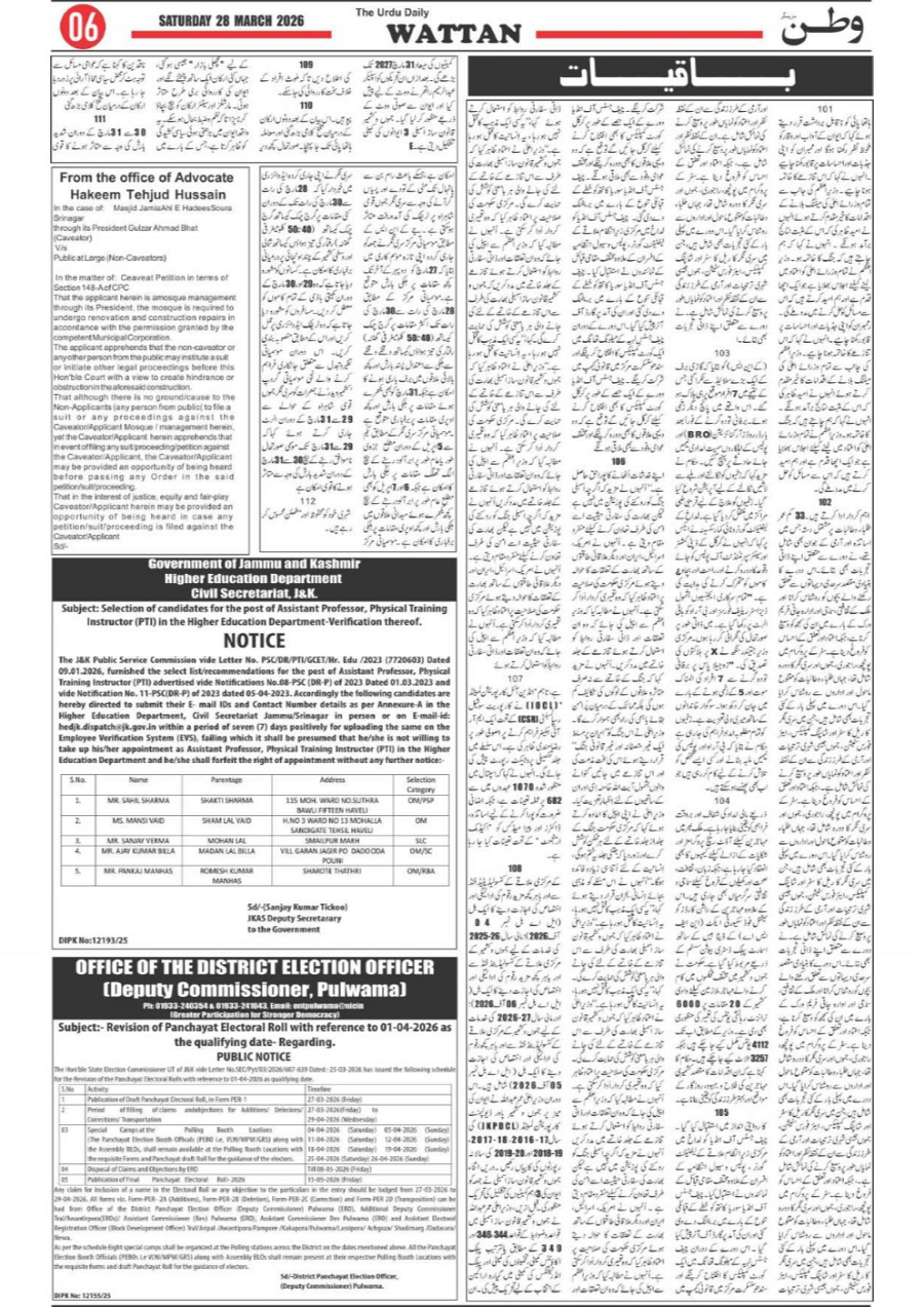 Wattan Daily 28 MARCH Page: 6 March 28, 2026 6 Page 1Page 2Page 3Page 4Page 5Page 6Page 7Page 8 × Wattan Daily 28 MARCH Watan 28 March_1Watan 28 March_2Watan 28 March_3Watan 28 March_4Watan 28 March_5Watan 28 March_6Watan 28 March_7Watan 28 March_8 Download PDF File << First << 6 >> Last >> Page no 1Page no 2Page no 3Page no 4Page no 5Page no 6Page no 7Page no 8