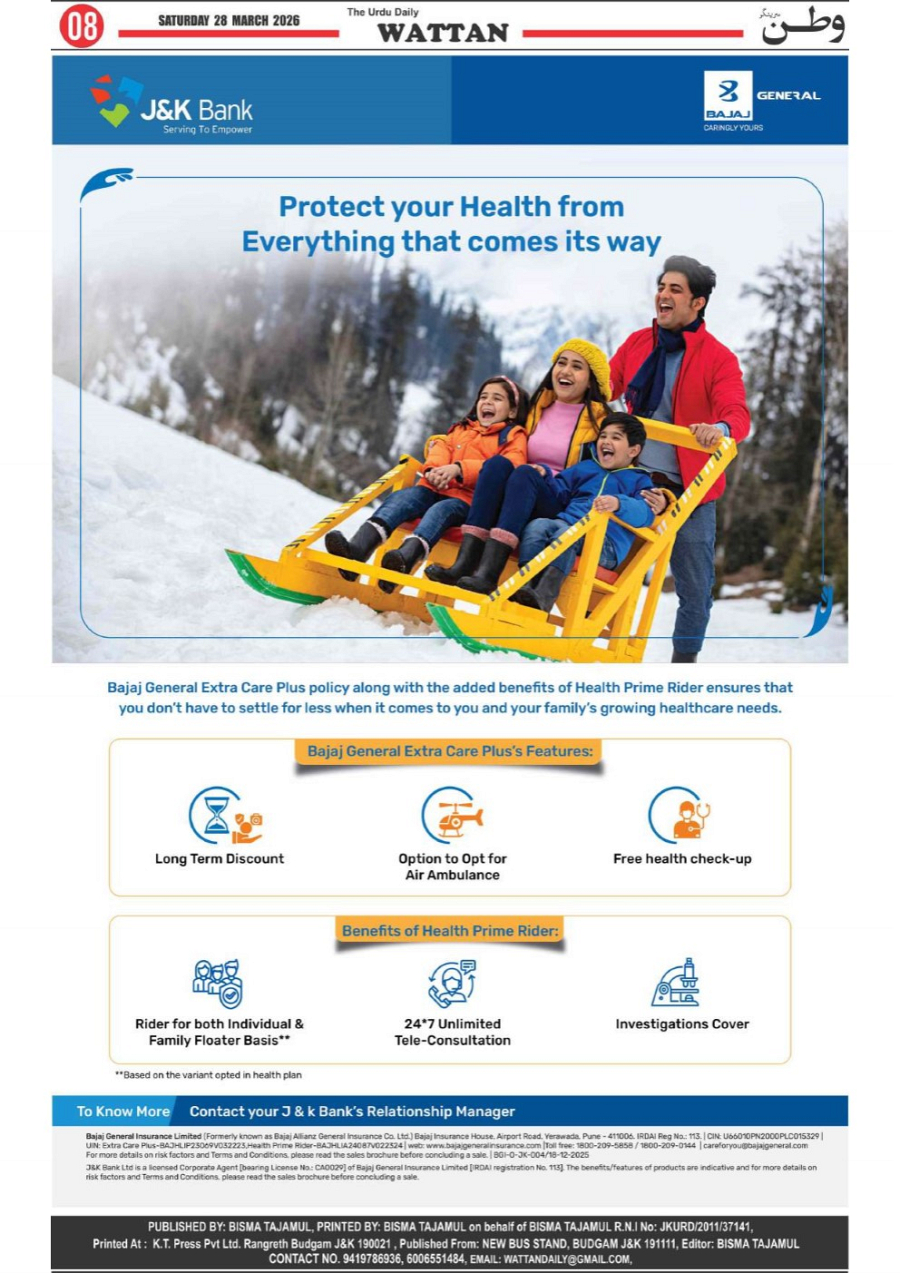 Wattan Daily 28 MARCH Page: 8 March 28, 2026 8 Page 1Page 2Page 3Page 4Page 5Page 6Page 7Page 8 × Wattan Daily 28 MARCH Watan 28 March_1Watan 28 March_2Watan 28 March_3Watan 28 March_4Watan 28 March_5Watan 28 March_6Watan 28 March_7Watan 28 March_8 Download PDF File << First << 8 >> Last >> Page no 1Page no 2Page no 3Page no 4Page no 5Page no 6Page no 7Page no 8