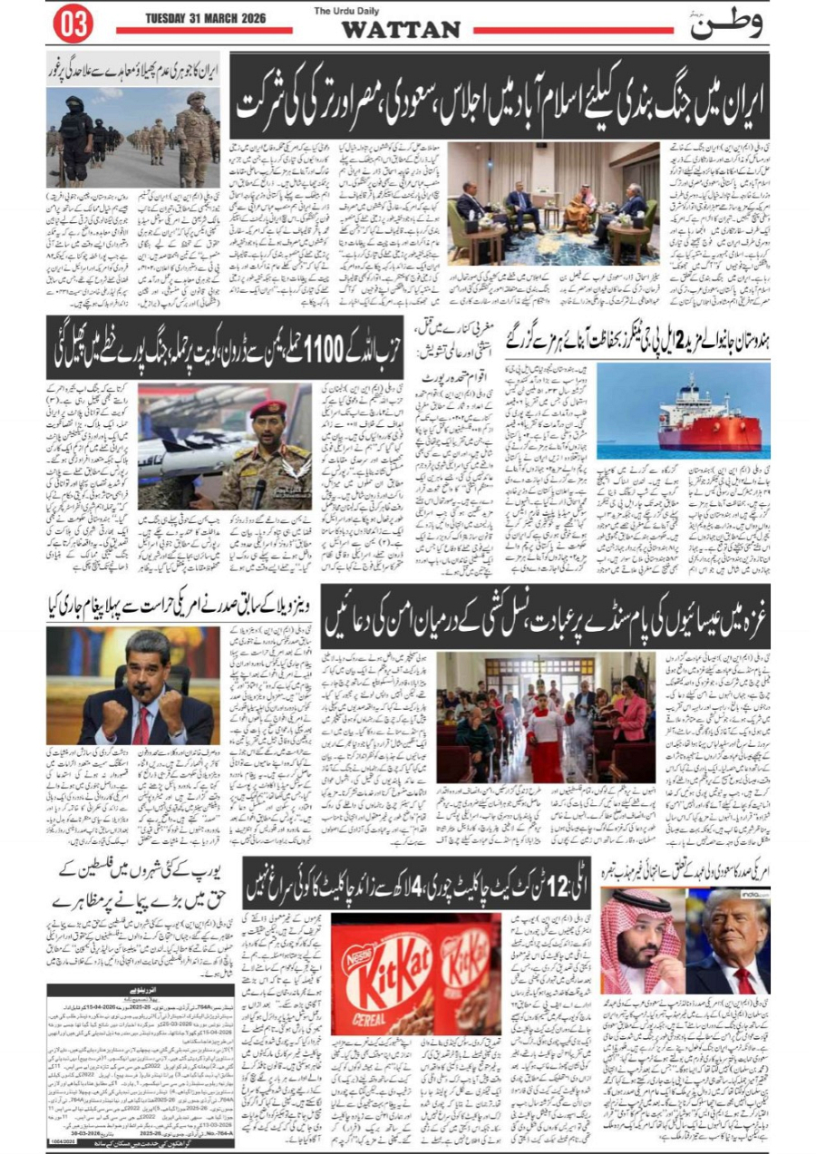 Wattan Daily 31 march Page: 3 March 31, 2026 3 Page 1Page 2Page 3Page 4Page 5Page 6Page 7Page 8 × Wattan Daily 31 march Wattan 31 March_1Wattan 31 March_2Wattan 31 March_3Wattan 31 March_4Wattan 31 March_5Wattan 31 March_6Wattan 31 March_7Wattan 31 March_8 Download PDF File << First << 3 >> Last >> Page no 1Page no 2Page no 3Page no 4Page no 5Page no 6Page no 7Page no 8