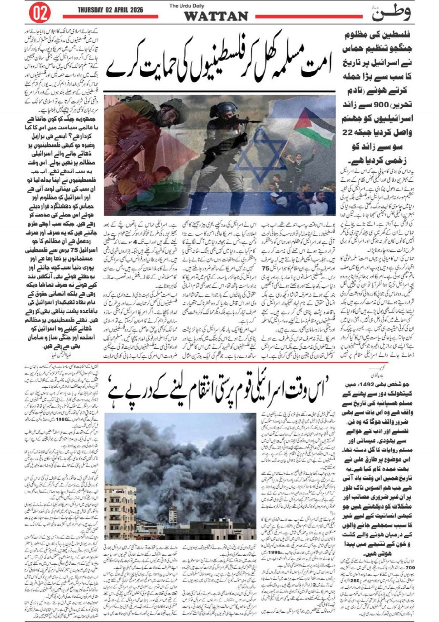 Wattan Daily 02 APRIL Page: 2 April 02, 2026 2 Page 1Page 2Page 3Page 4Page 5Page 6Page 7Page 8 × Wattan Daily 02 APRIL Wattan 02 April_1Wattan 02 April_2Wattan 02 April_3Wattan 02 April_4Wattan 02 April_5Wattan 02 April_6Wattan 02 April_7Wattan 02 April_8 Download PDF File << First << 2 >> Last >> Page no 1Page no 2Page no 3Page no 4Page no 5Page no 6Page no 7Page no 8