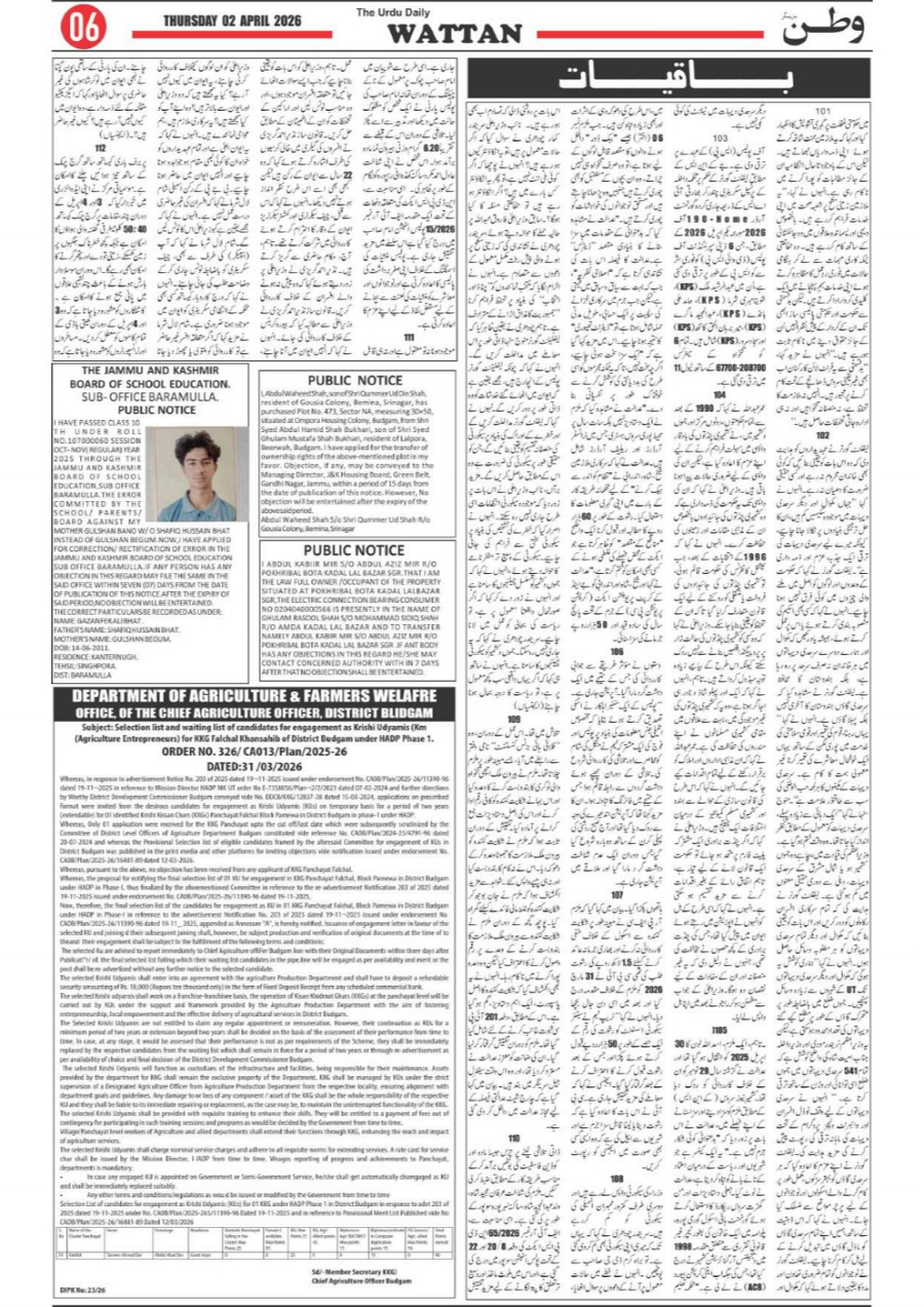 Wattan Daily 02 APRIL Page: 6 April 02, 2026 6 Page 1Page 2Page 3Page 4Page 5Page 6Page 7Page 8 × Wattan Daily 02 APRIL Wattan 02 April_1Wattan 02 April_2Wattan 02 April_3Wattan 02 April_4Wattan 02 April_5Wattan 02 April_6Wattan 02 April_7Wattan 02 April_8 Download PDF File << First << 6 >> Last >> Page no 1Page no 2Page no 3Page no 4Page no 5Page no 6Page no 7Page no 8
