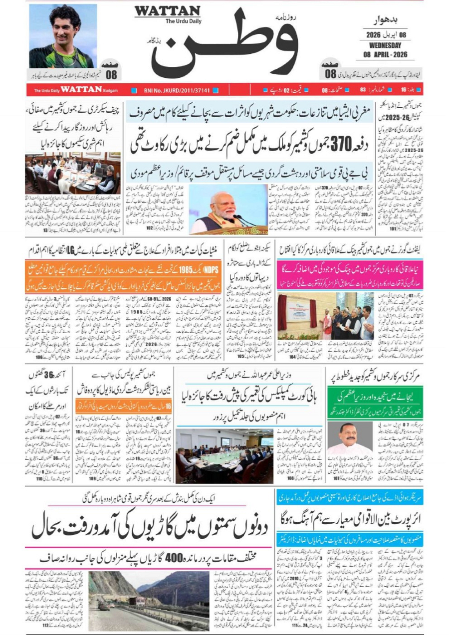Wattan Daily 08 april April 08, 2026 1 Page 1Page 2Page 3Page 4Page 5Page 6Page 7Page 8 × Wattan Daily 08 april Watan 8 Apr_1Watan 8 Apr_2Watan 8 Apr_3Watan 8 Apr_4Watan 8 Apr_5Watan 8 Apr_6Watan 8 Apr_7Watan 8 Apr_8 Download PDF File << First << 1 >> Last >> Page no 1Page no 2Page no 3Page no 4Page no 5Page no 6Page no 7Page no 8