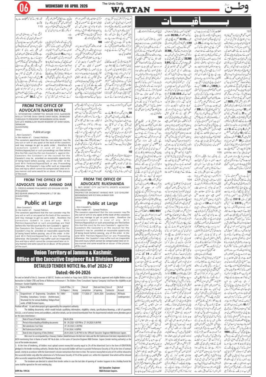 Wattan Daily 08 april Page: 6 April 08, 2026 6 Page 1Page 2Page 3Page 4Page 5Page 6Page 7Page 8 × Wattan Daily 08 april Watan 8 Apr_1Watan 8 Apr_2Watan 8 Apr_3Watan 8 Apr_4Watan 8 Apr_5Watan 8 Apr_6Watan 8 Apr_7Watan 8 Apr_8 Download PDF File << First << 6 >> Last >> Page no 1Page no 2Page no 3Page no 4Page no 5Page no 6Page no 7Page no 8