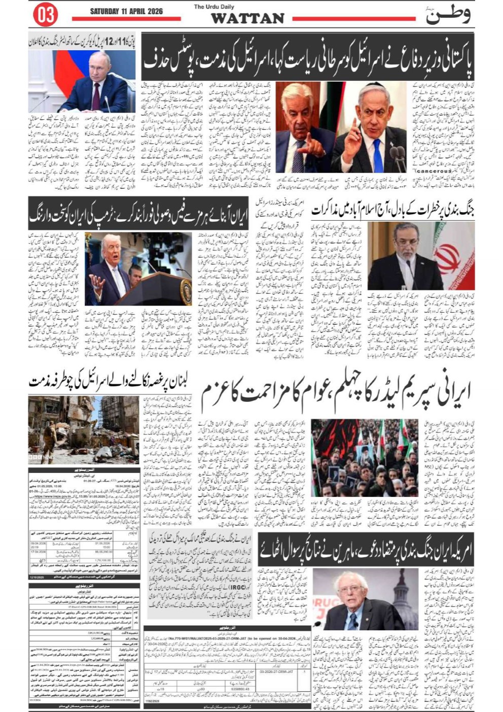 Wattan Daily 11 APRIL Page: 3 April 11, 2026 3 Page 1Page 2Page 3Page 4Page 5Page 6Page 7Page 8 × Wattan Daily 11 APRIL Wattan 11 April_1Wattan 11 April_2Wattan 11 April_3Wattan 11 April_4Wattan 11 April_5Wattan 11 April_6Wattan 11 April_7Wattan 11 April_8 Download PDF File << First << 3 >> Last >> Page no 1Page no 2Page no 3Page no 4Page no 5Page no 6Page no 7Page no 8