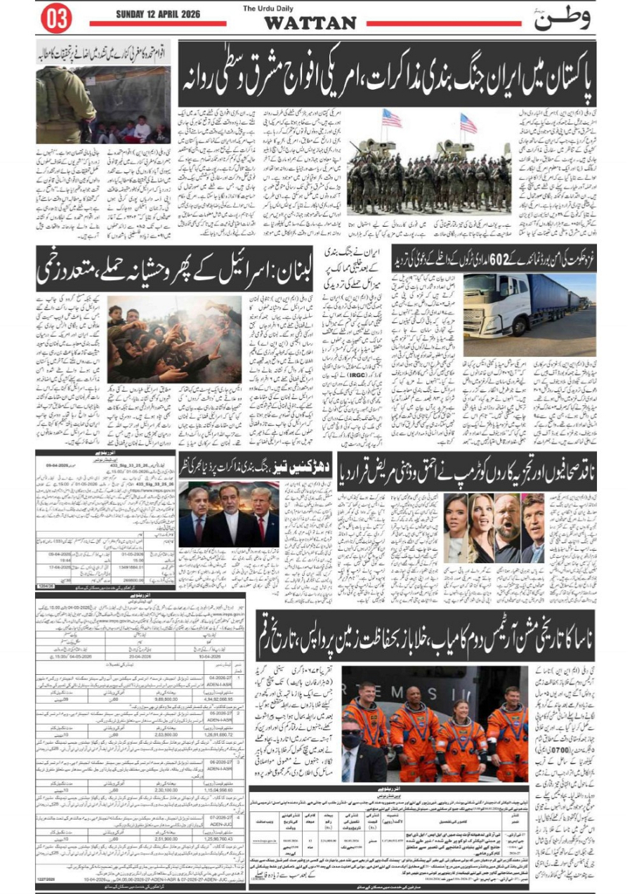 Wattan Daily 12 april Page: 3 April 12, 2026 3 Page 1Page 2Page 3Page 4Page 5Page 6Page 7Page 8 × Wattan Daily 12 april Wattan 12 April_1Wattan 12 April_2Wattan 12 April_3Wattan 12 April_4Wattan 12 April_5Wattan 12 April_6Wattan 12 April_7Wattan 12 April_8 Download PDF File << First << 3 >> Last >> Page no 1Page no 2Page no 3Page no 4Page no 5Page no 6Page no 7Page no 8