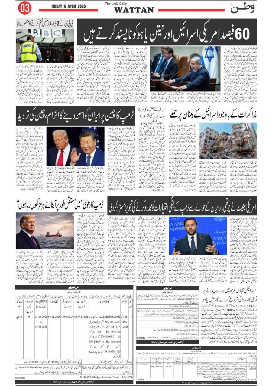 Wattan Daily 17 april Page: 3 April 17, 2026 3 Page 1Page 2Page 3Page 4Page 5Page 6Page 7Page 8 × Wattan Daily 17 april Wattan 17 April 26_1Wattan 17 April 26_2Wattan 17 April 26_3Wattan 17 April 26_4Wattan 17 April 26_5Wattan 17 April 26_6Wattan 17 April 26_7Wattan 17 April 26_8 Download PDF File << First << 3 >> Last >> Page no 1Page no 2Page no 3Page no 4Page no 5Page no 6Page no 7Page no 8