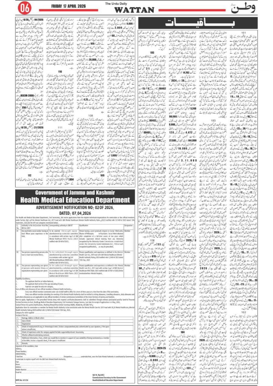Wattan Daily 17 april Page: 6 April 17, 2026 6 Page 1Page 2Page 3Page 4Page 5Page 6Page 7Page 8 × Wattan Daily 17 april Wattan 17 April 26_1Wattan 17 April 26_2Wattan 17 April 26_3Wattan 17 April 26_4Wattan 17 April 26_5Wattan 17 April 26_6Wattan 17 April 26_7Wattan 17 April 26_8 Download PDF File << First << 6 >> Last >> Page no 1Page no 2Page no 3Page no 4Page no 5Page no 6Page no 7Page no 8