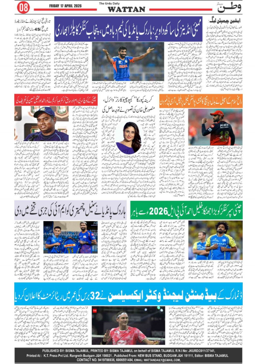 Wattan Daily 17 april Page: 8 April 17, 2026 8 Page 1Page 2Page 3Page 4Page 5Page 6Page 7Page 8 × Wattan Daily 17 april Wattan 17 April 26_1Wattan 17 April 26_2Wattan 17 April 26_3Wattan 17 April 26_4Wattan 17 April 26_5Wattan 17 April 26_6Wattan 17 April 26_7Wattan 17 April 26_8 Download PDF File << First << 8 >> Last >> Page no 1Page no 2Page no 3Page no 4Page no 5Page no 6Page no 7Page no 8