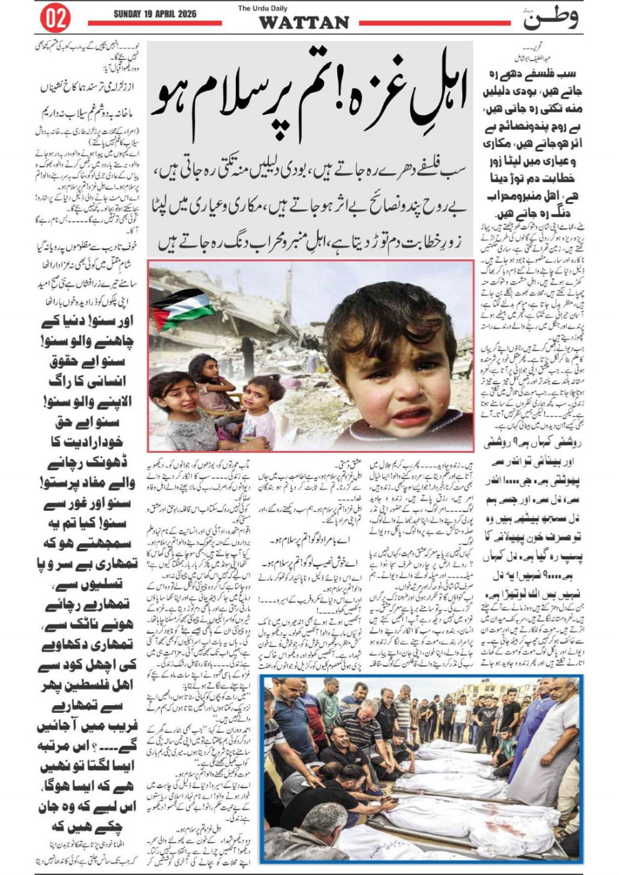 Wattan Daily 19 april Page: 2 April 19, 2026 2 Page 1Page 2Page 3Page 4Page 5Page 6Page 7Page 8 × Wattan Daily 19 april Wattan 19 April_1Wattan 19 April_2Wattan 19 April_3Wattan 19 April_4Wattan 19 April_5Wattan 19 April_6Wattan 19 April_7Wattan 19 April_8 Download PDF File << First << 2 >> Last >> Page no 1Page no 2Page no 3Page no 4Page no 5Page no 6Page no 7Page no 8