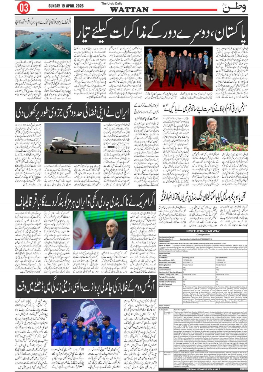 Wattan Daily 19 april Page: 3 April 19, 2026 3 Page 1Page 2Page 3Page 4Page 5Page 6Page 7Page 8 × Wattan Daily 19 april Wattan 19 April_1Wattan 19 April_2Wattan 19 April_3Wattan 19 April_4Wattan 19 April_5Wattan 19 April_6Wattan 19 April_7Wattan 19 April_8 Download PDF File << First << 3 >> Last >> Page no 1Page no 2Page no 3Page no 4Page no 5Page no 6Page no 7Page no 8