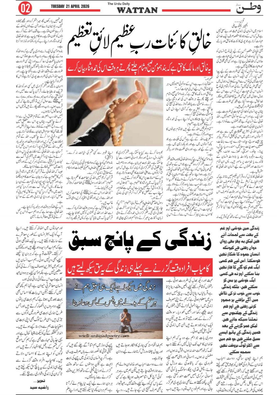 Wattan Daily 21 april Page: 2 April 21, 2026 2 Page 1Page 2Page 3Page 4Page 5Page 6Page 7Page 8 × Wattan Daily 21 april Wattan 21 April_1Wattan 21 April_2Wattan 21 April_3Wattan 21 April_4Wattan 21 April_5Wattan 21 April_6Wattan 21 April_7Wattan 21 April_8 Download PDF File << First << 2 >> Last >> Page no 1Page no 2Page no 3Page no 4Page no 5Page no 6Page no 7Page no 8