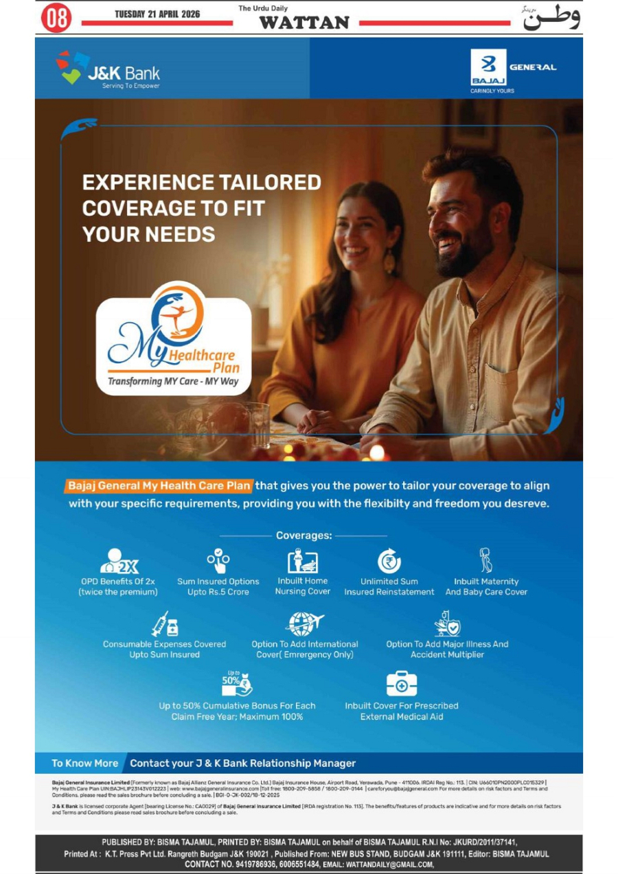 Wattan Daily 21 april Page: 8 April 21, 2026 8 Page 1Page 2Page 3Page 4Page 5Page 6Page 7Page 8 × Wattan Daily 21 april Wattan 21 April_1Wattan 21 April_2Wattan 21 April_3Wattan 21 April_4Wattan 21 April_5Wattan 21 April_6Wattan 21 April_7Wattan 21 April_8 Download PDF File << First << 8 >> Last >> Page no 1Page no 2Page no 3Page no 4Page no 5Page no 6Page no 7Page no 8